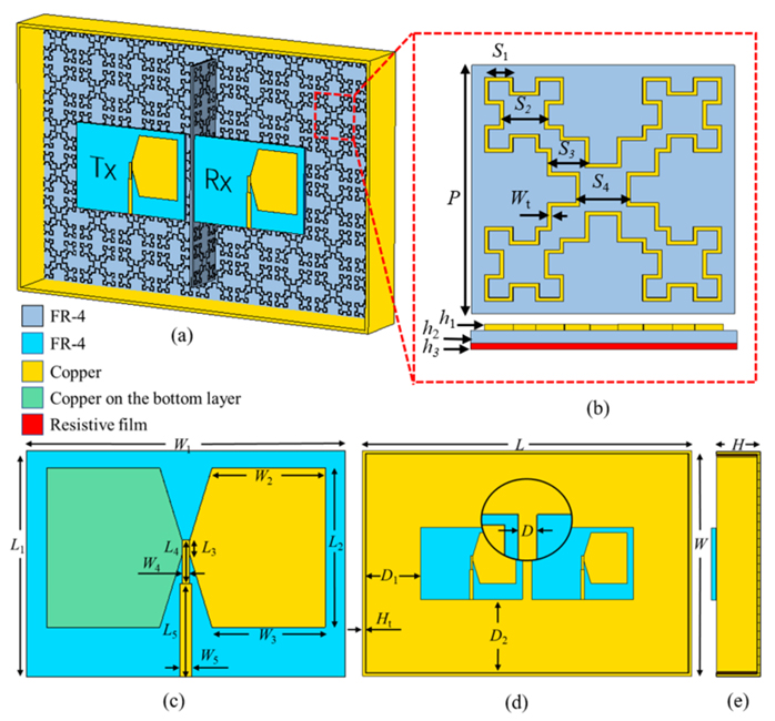 ※ 用於降低 5G 大規模 MIMO 天線陣列互耦的吸收體輔助結構。