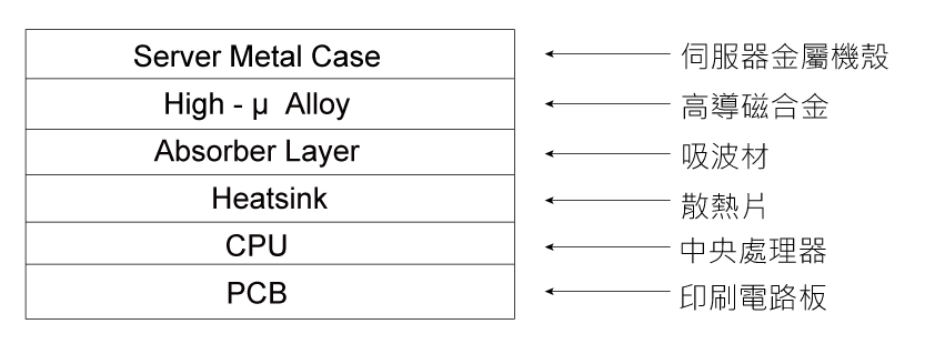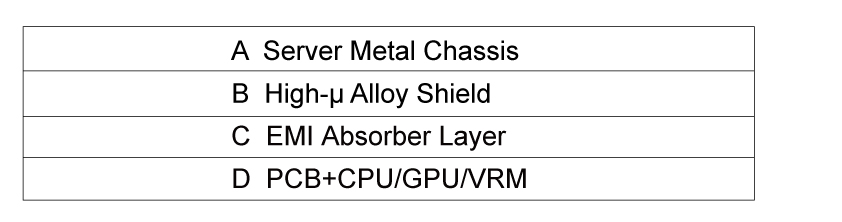 本系統於高功率模組與高速訊號區導入高導磁合金進行磁場導引與集中,有效降低低頻磁洩漏與模組間磁耦合干擾,提升伺服器整體穩定性與電磁相容性表現。